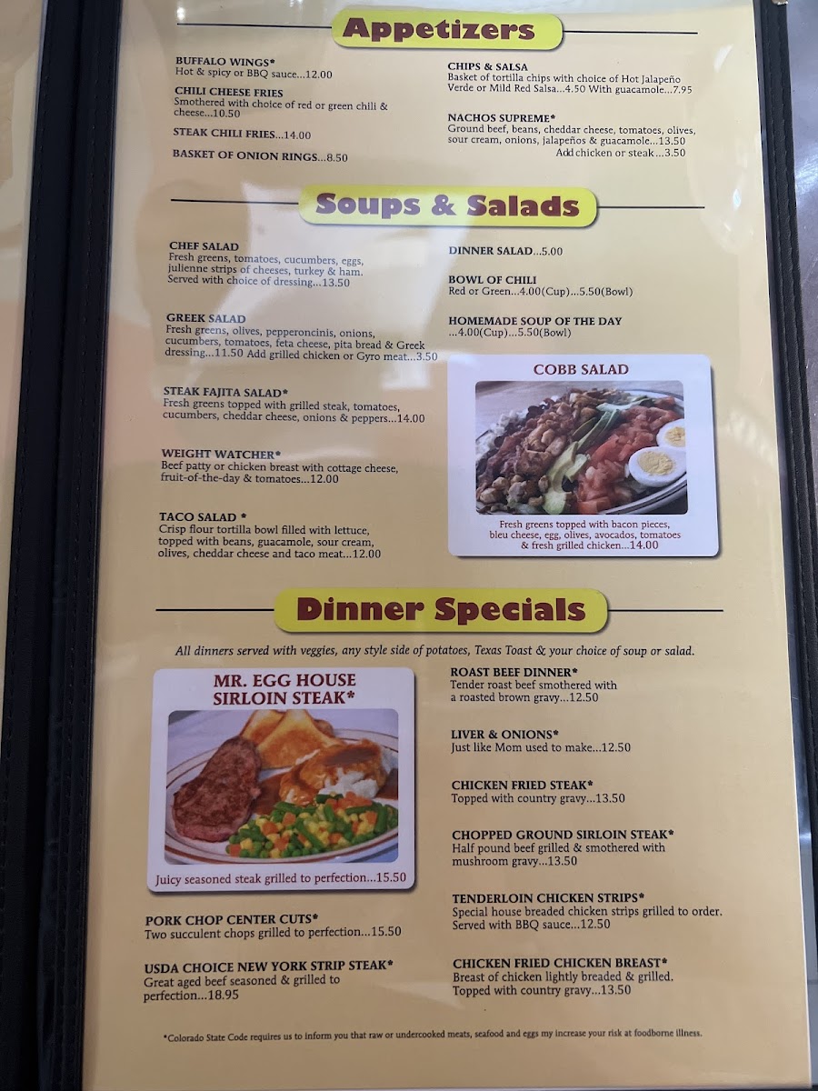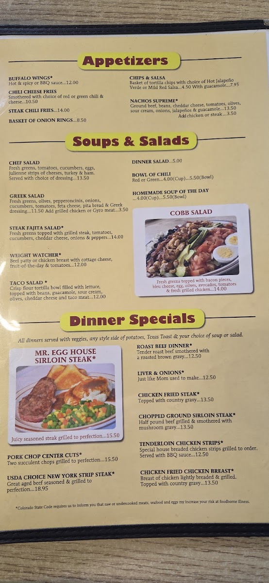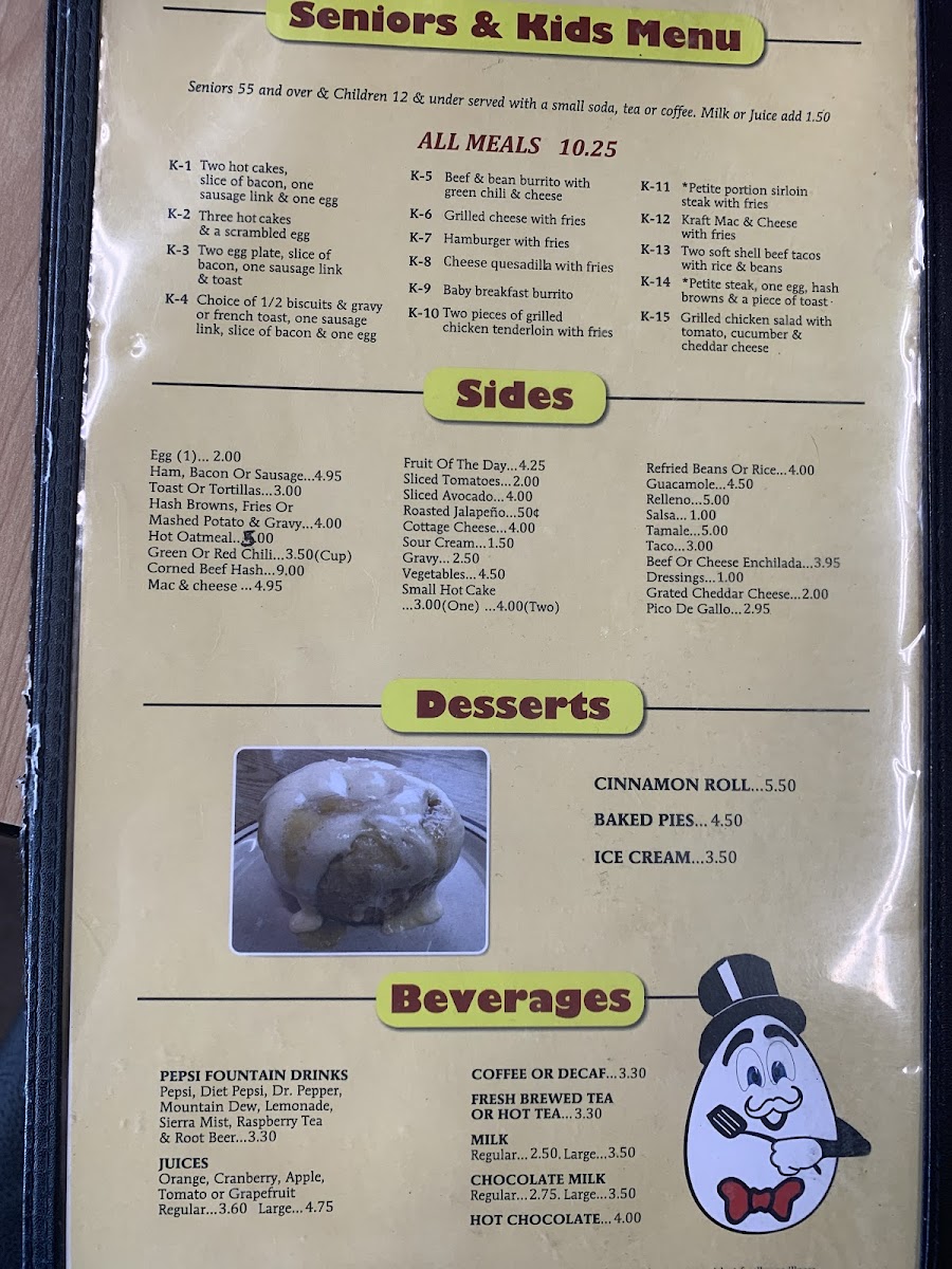 The menu at this breakfast restaurant is organized into several key sections to offer a variety of options suitable for breakfast, brunch, or casual dining. Guests can find appetizers, soups and salads, and a selection of omelets and hearty breakfast entrees.